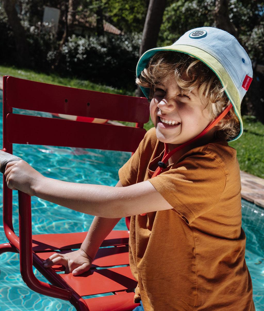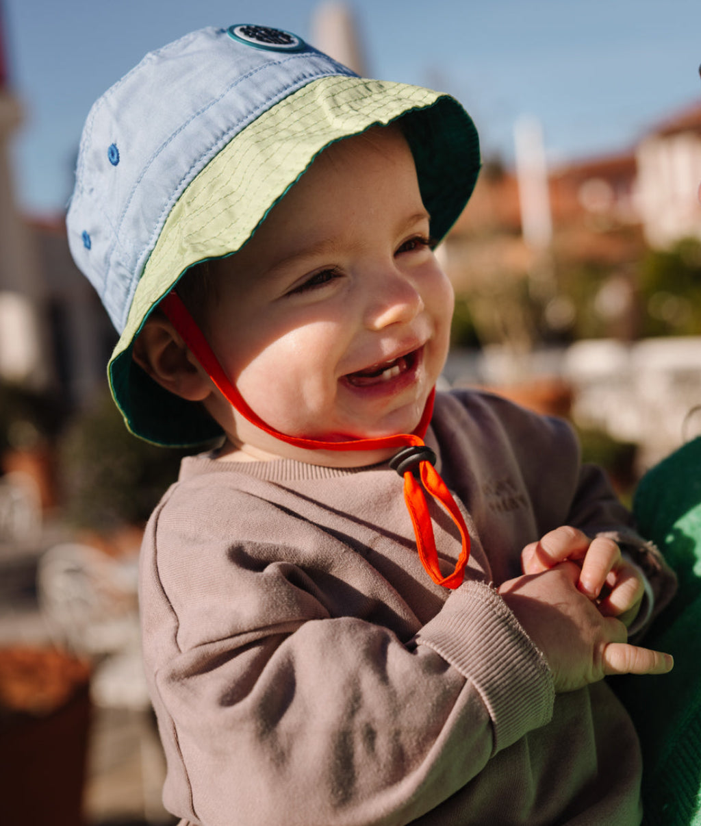 Découvrez le Bob pour enfants et bébés, Mini Fresh. Style bicolore iconique, éco-responsable, avec attache, parfait pour les jours chauds. Un bob confortable, facile à porter, disponible dès 3 mois.