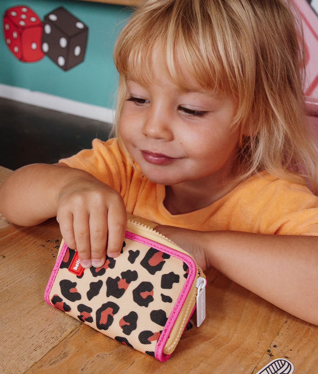 El monedero infantil Léopard #7 es un diseño icónico. Las mamás también son fans ❤️ El estampado de leopardo, colorido y con estilo, combina a la perfección con nuestras mochilas infantiles de leopardo. ¡Equípalos con estilo! Idea de regalo para madre e hija.